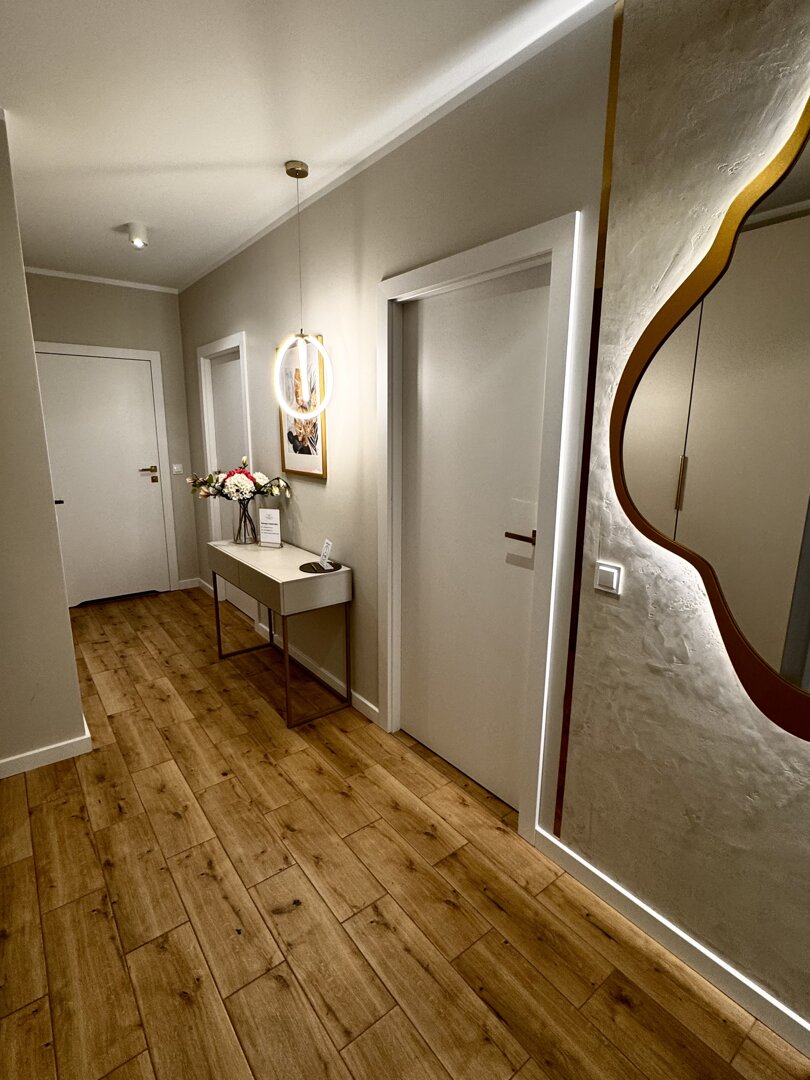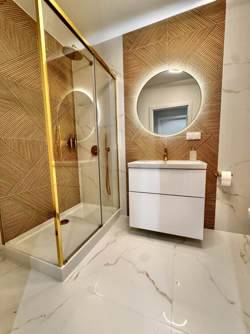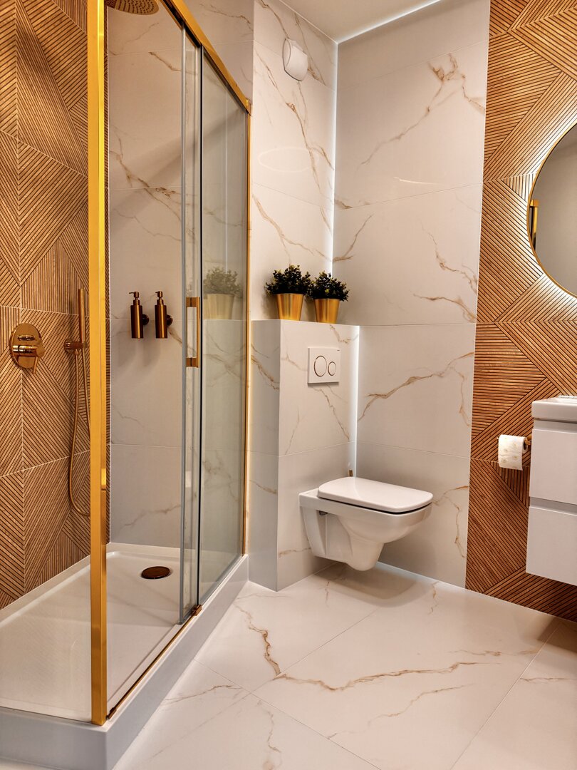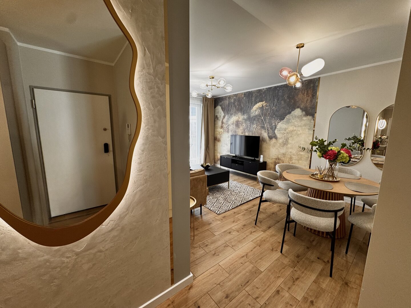 Elegancki i przestronny apartament o powierzchni 67 m², idealny dla 4 do 6 osób. Stylowe wnętrze ze złotymi akcentami zapewnia wyjątkowy klimat.